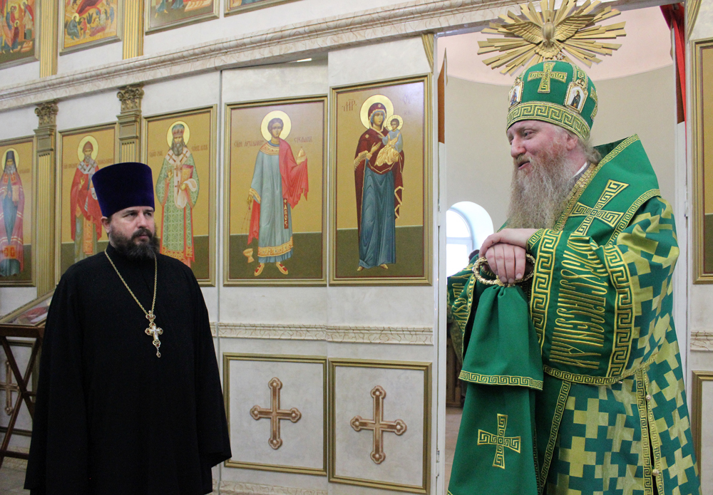 В завершение молебного пения епископ Евфимий совершил чин освящения нового храмового образа преподобного Серафима, после чего поздравил отца настоятеля, сослужащее духовенство и верующих с престольным торжеством, обратившись со словом.