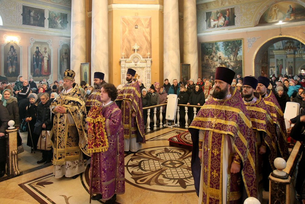 В Неделю сыропустную правящий архиерей возглавил совершение Божественной Литургии в Христо-Рождественском соборе г. Липецка