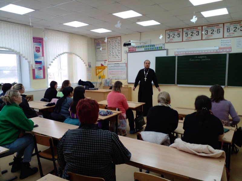31 марта в СОШ им. Л. Н. Толстого п. Лев Толстой прошло собрание родителей 3 класса по выбору образовательной дисциплины Основ православной культуры.