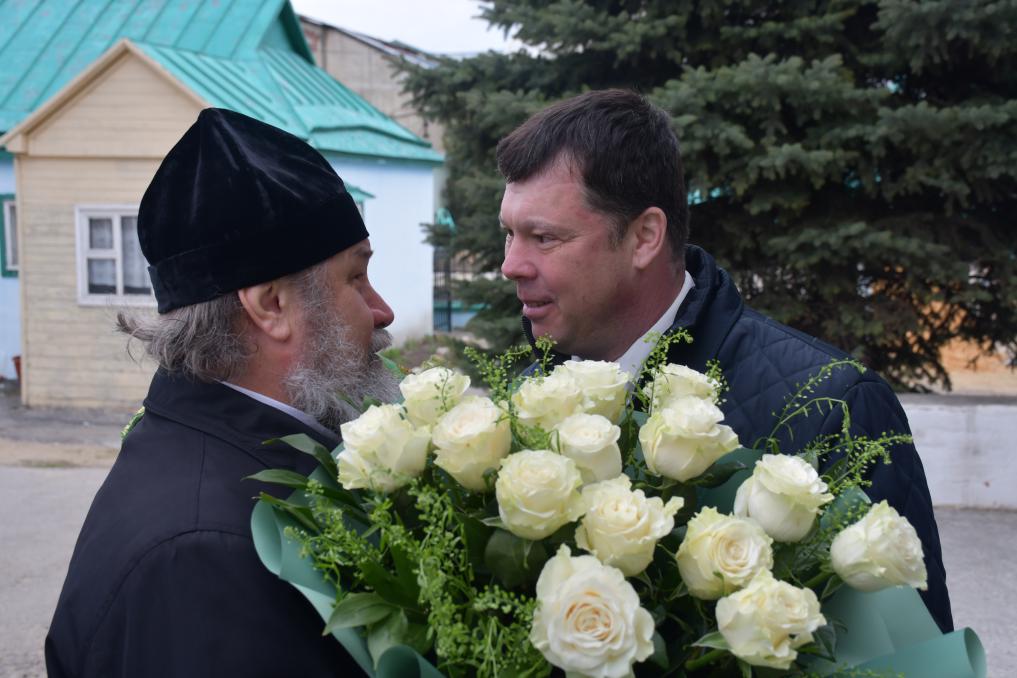 У входа в храм с цветами Владыку встречали первый заместитель главы администрации Лебедянского района А.В. Антонов, дети воскресной школы храма, казаки и прихожане.