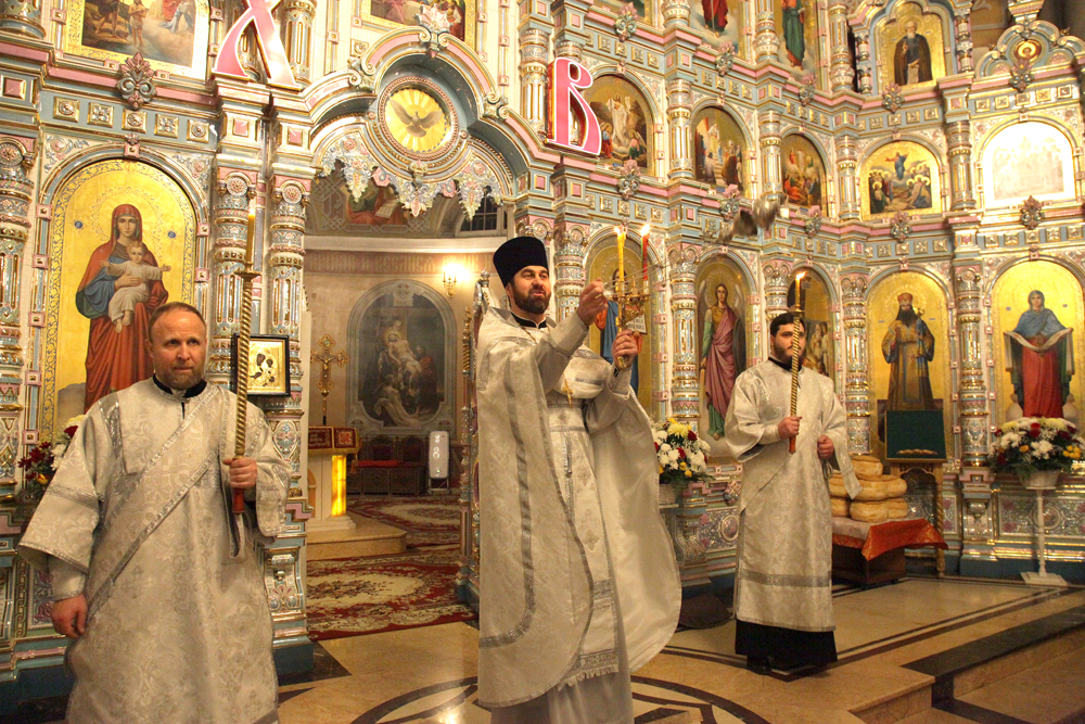 Его Высокопреосвященству сослужили протоиереи: Василий Бильчук, настоятель собора, Владимир Максимчук, ключарь собора, Алексий Носач; иереи: Сергий Гришанов, Виктор Архипкин, Александр Алешин, Александр Лихошерст; диаконы: Андрей Кантарюк и Олег Мальцев, клирики собора.