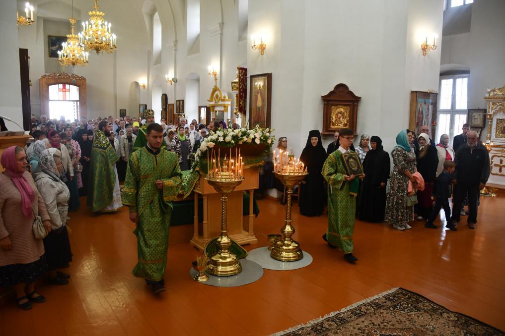 За богослужением молились настоятельница Елецкого Знаменского женского монастыря игумения Аркадия (Енькова) с сестрами, настоятельница Свято-Димитриевского Иларионовского женского монастыря с. Троекурово игумения Матрона (Брыксина) с сестрами, многочисленные паломники, прибывшие в обитель к празднику.