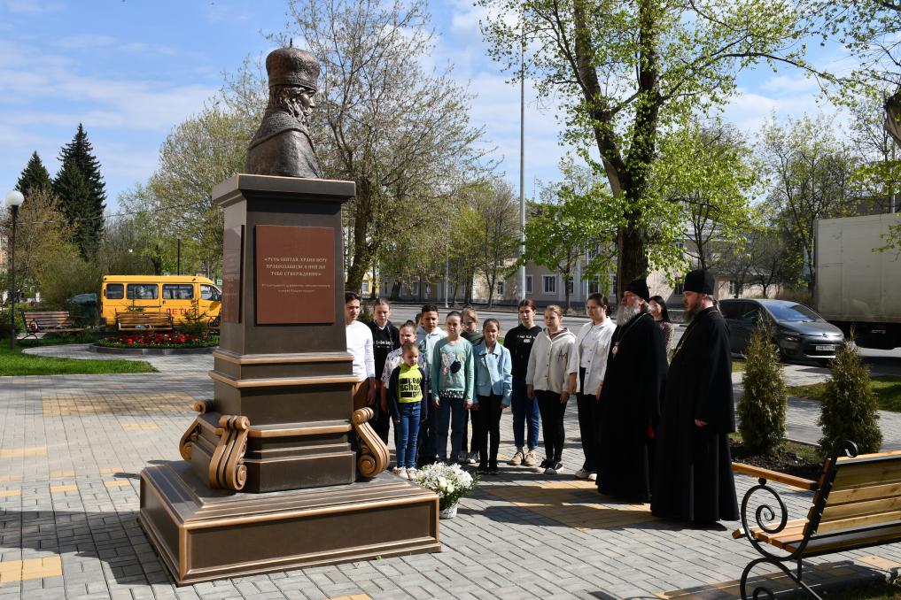 Владыка Максим возложил цветы к бюсту священномученика Сергия, архиепископа Елецкого