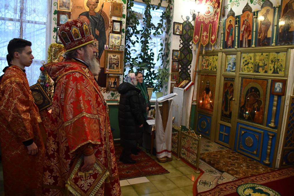Владыке сослужили председатель комиссии по пастырской работе в исправительных учреждениях иерей Сергий Яцков и иерей Алексий Малышев.