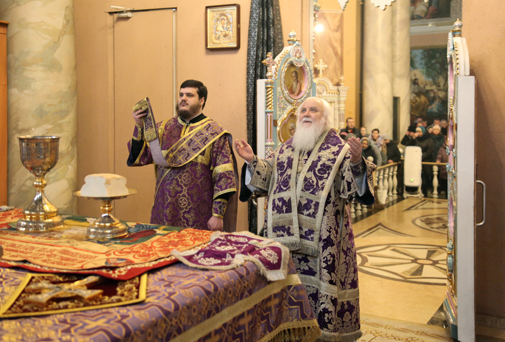 Его Высокопреосвященству сослужили протоиереи: Василий Бильчук, настоятель собора, Владимир Максимчук, ключарь собора, Алексий Носач; иереи: Сергий Гришанов, Александр Алешин; диаконы: Андрей Кантарюк и Олег Мальцев, клирики собора.