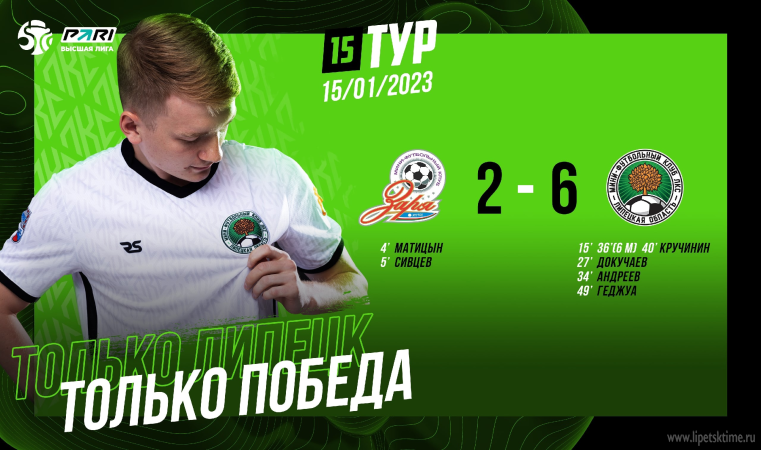 15 тур PARI – Высшая лига Первенства России по мини-футболу среди мужских команд закончился победой наших спортсменов над якутским ПФК «Заря» со счётом 2:6.