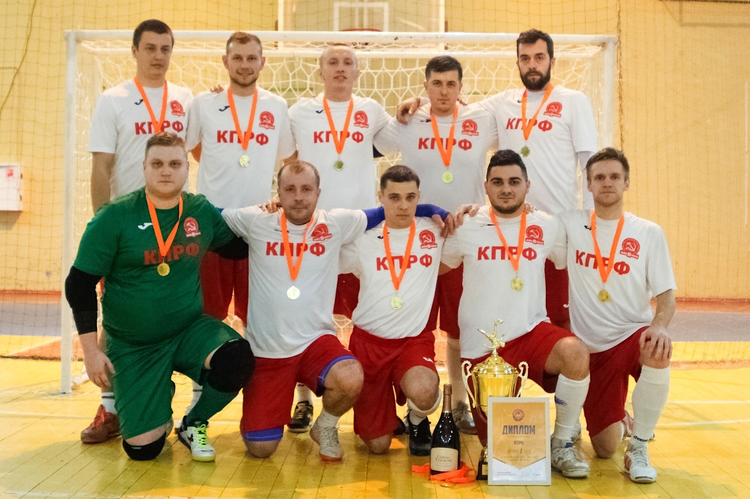За весь чемпионат команда КПРФ (на фото) допустила лишь одну осечку, неожиданно проиграв «Авиатору» под руководством Игоря Лысенко - 4:5. Однако в решающем и заключительном поединке с «Альянсом» «коммунисты» одержали уверенную победу - 8:3 и завоевали главный трофей в сильнейшей лиге «А». Цвета КПРФ защищали такие известные в регионе футзалисты, как Сергей Кондратьев , Евгений Барбашин , Александр Самохин , Эдуард Кузменков , Давид Галстян .