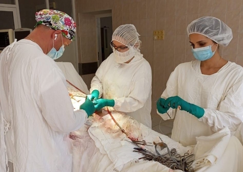 В результате многочасовой операции заведующий сосудистым отделением ЛОКБ Круглов Александр Николаевич и врач-ангиохирург Жужукина Кристина Сергеевна удалили аневризму и установили протез вместо повреждённого сосуда.