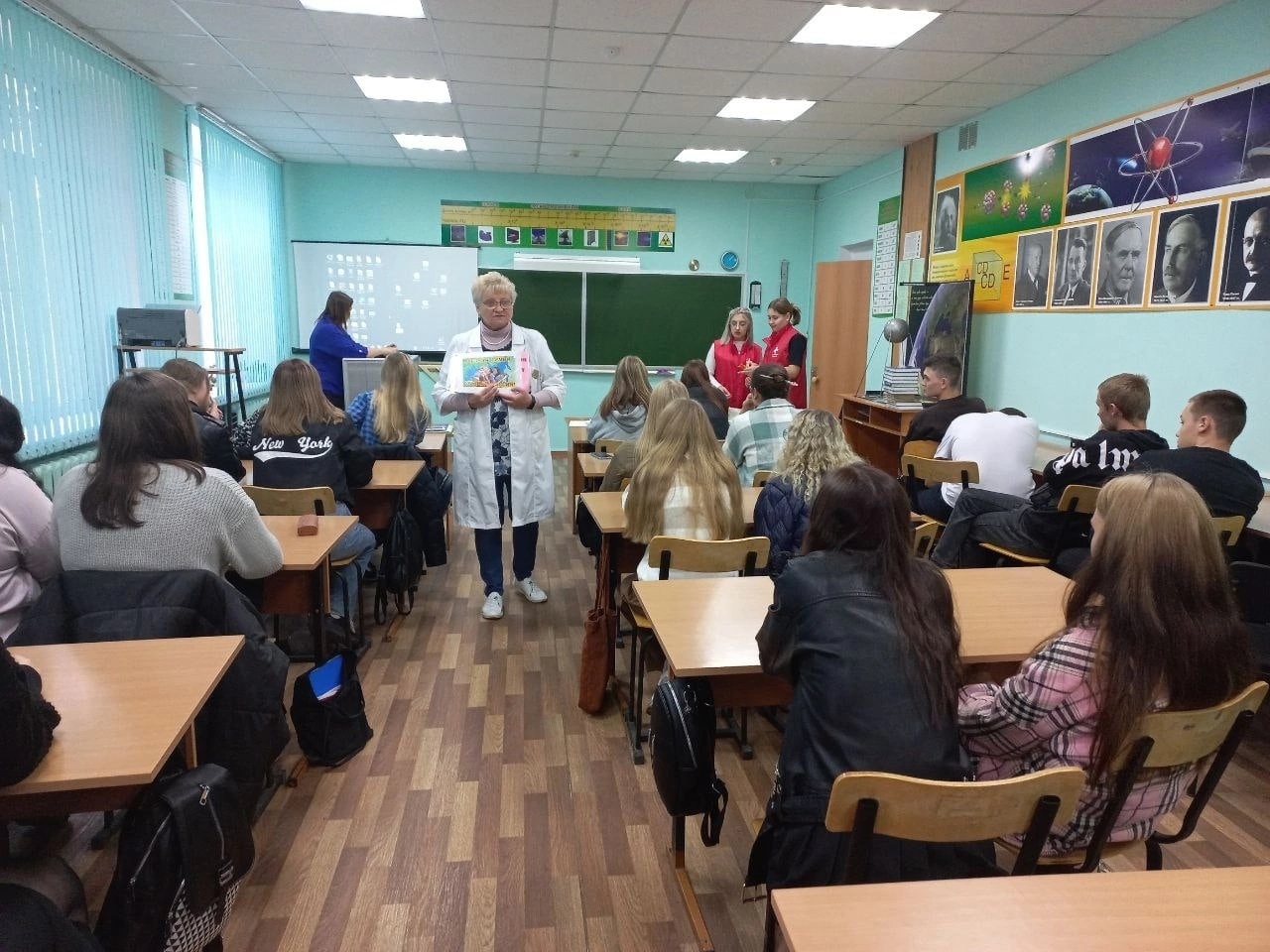 Врач-нарколог, психиатр Елецкого наркологического диспансера Королев Александр Юрьевич и специалист отделения медицинской профилактики Мясцова Валентина Ивановна совместно с волонтерами – медиками ГАПОУ «Елецкий медицинский колледж им. К.С. Константиновой» рассказали студентам ГОБПОУ “Елецкий колледж экономики, промышленности и отраслевых технологий” образовательно-производственного кластера “Цифровое машиностроение Липецкой области” о вреде алкоголя для организма человека.