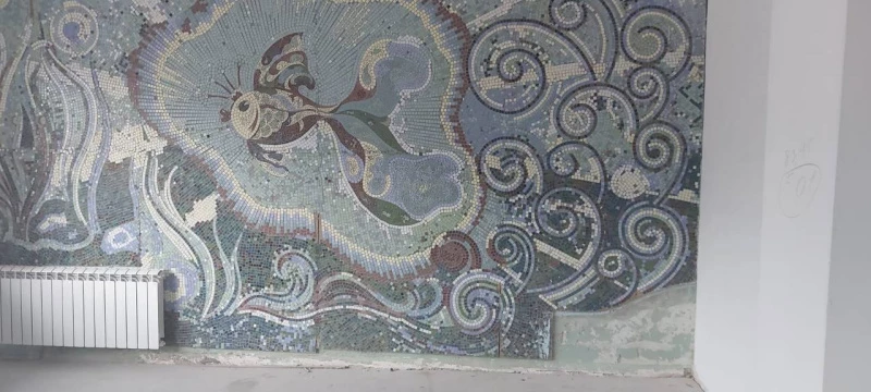 На Тракторном во время ремонта решили сохранить мозаичное панно.