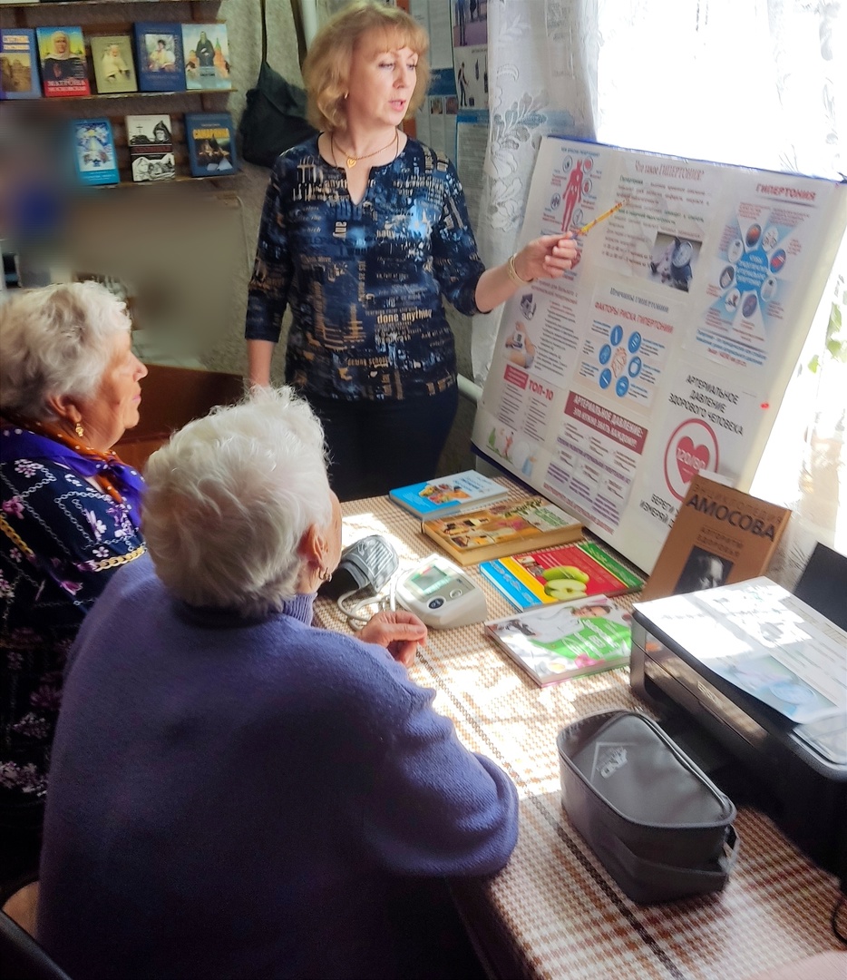 В 2023 году Всемирный День борьбы с артериальной гипертонией проводиться под девизом «Точно измеряйте свое кровяное давление. Контролируйте его. Живите дольше». Основная цель Дня – способствовать повышению информированности широких слоев населения об одном из самых распространенных заболеваний сердечно-сосудистой системы, напомнить о необходимости регулярно измерять и знать свои цифры артериального давления, а также соблюдать правильную диету, вести активный образ жизни и отказаться от вредных привычек. В Покрово-Казацком филиале прошел тематический час «Скажем СТОП – гипертонии!».