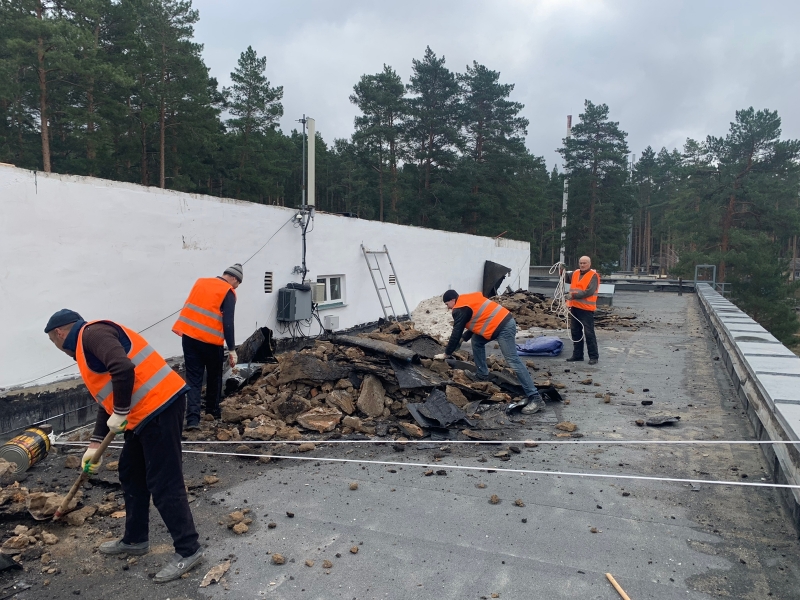 В настоящее время подрядчик приступил к выполнению работ. Будет заменено более 900 кв. м кровли с полным демонтажом существующих слоев до плит покрытия.