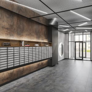 2. Прозрачные двери в подъезды - пространство наполнено светом и объёмом, а жители видят, что происходит внутри подъезда и снаружи во дворе