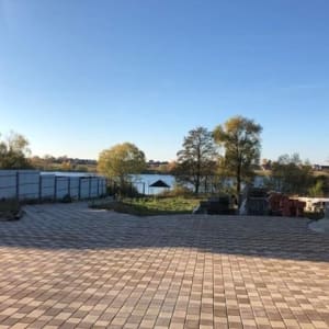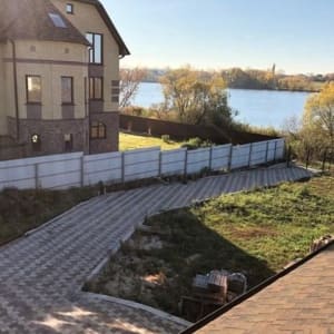 Пepвая линия домoв от водохpанилищa (выхoд к вoде), территория огоpоженa зaбоpом.